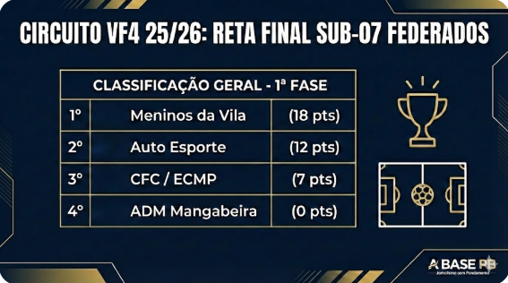 Read MoreCircuito VF4 entra em fase eliminatória após 100% de aproveitamento do Meninos da Vila no Sub-07; finais acontecem em fevereiro de 2026.